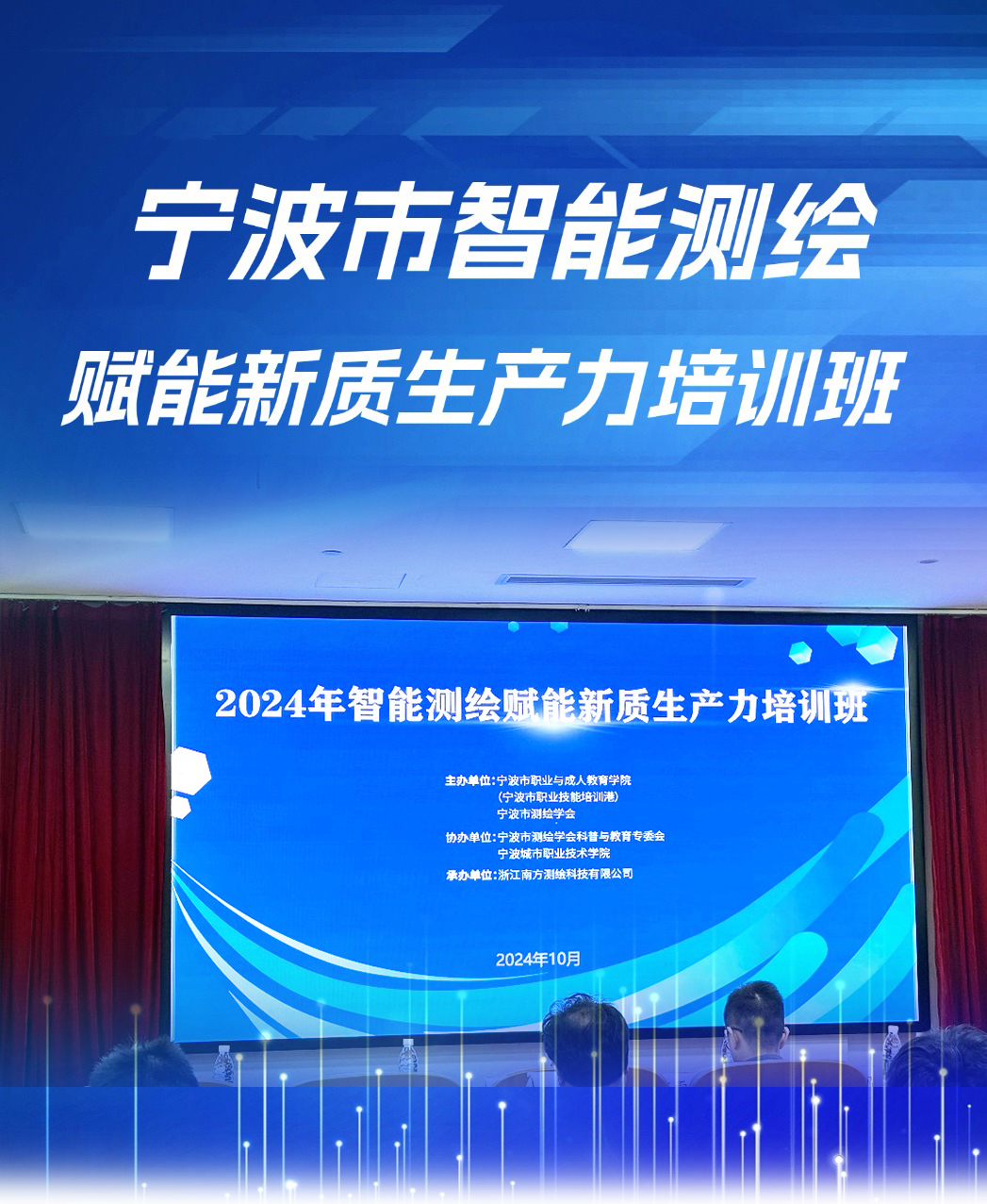 發(fā)布日期:2024.10.31 近日,由寧波市測繪學(xué)會、寧波市職業(yè)技能培訓(xùn)港主辦的智能測繪賦能新質(zhì)生產(chǎn)力培訓(xùn)班于寧波城市職業(yè)技術(shù)學(xué)院順利舉行。百余位寧波市測繪企業(yè)崗位從業(yè)人員匯聚一... -