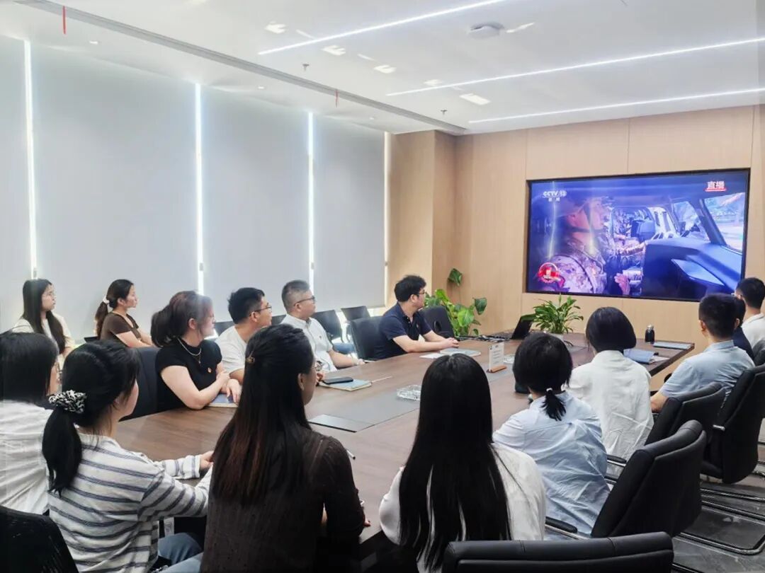新大樓各層會議室現(xiàn)場氣氛莊重,全體黨員及職工認真聆聽習近平主席重要講話。當閱兵儀式開始時,大家不時為受閱部隊的雄壯陣容和先進裝備贊嘆鼓掌,由衷為祖國日益強大的綜合國力與國防力量感到自豪。觀看結束后,黨員們深受震撼、心潮澎湃,一致認為這場閱兵不僅展示了國威軍威,更彰顯了中華民族百折不撓、團結奮進的偉大精神。