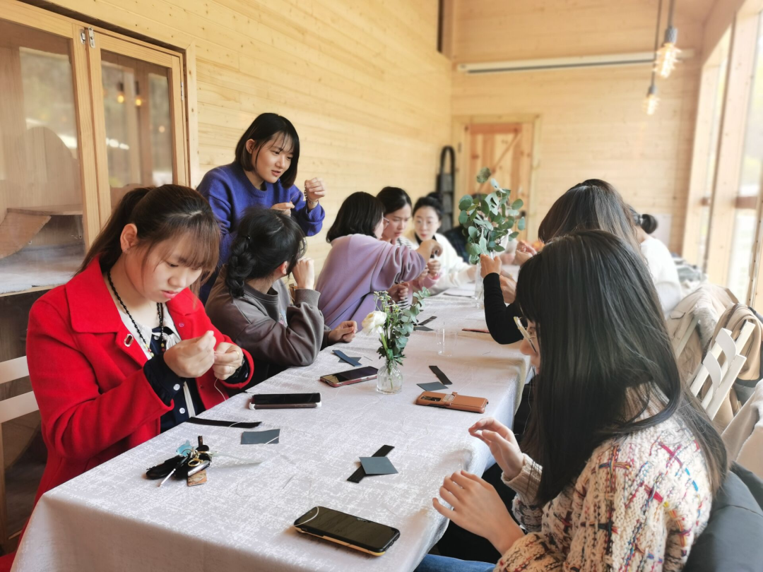 本次三八活動(dòng)特設(shè)皮革制作課程,大家動(dòng)手制作專屬自己的節(jié)日禮物,從反復(fù)打磨到巧手縫制,專業(yè)老師熱情普及皮革制作工藝,耐心傳授縫合技巧手法,各色精巧的鑰匙扣在慧心巧手間誕生,深受喜愛。