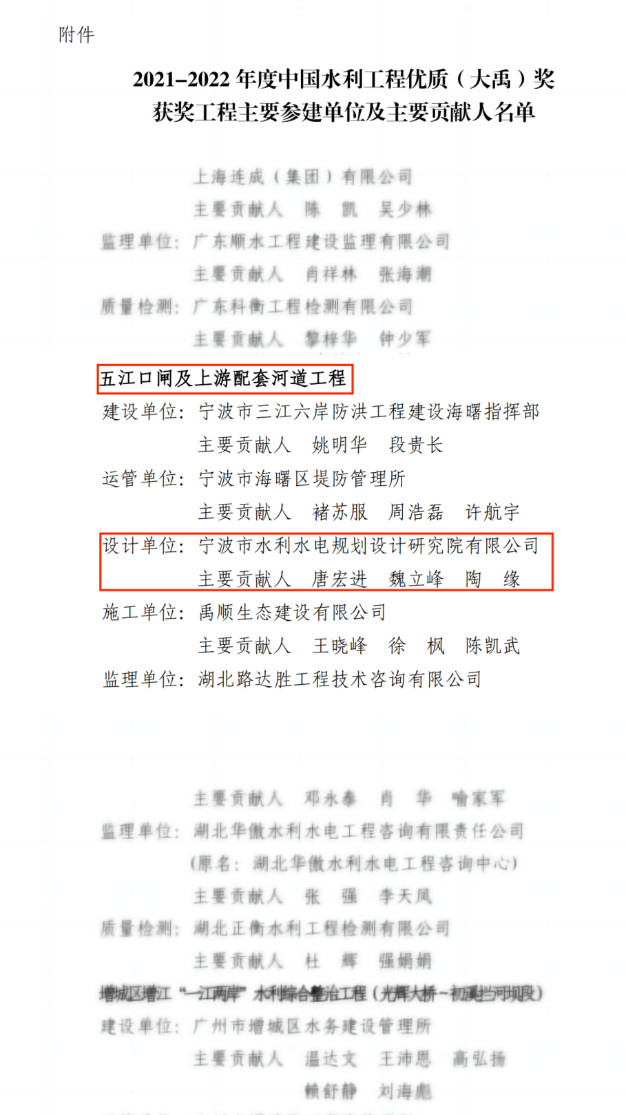 近日,2021年~2022年度中國水利工程優(yōu)質(zhì)(大禹)獎獲獎名單出爐,36個獲獎工程中,我院成功鎖定一席!此次我院設(shè)計的五江口閘及上游配套河道工程,是我院第七個榮獲大禹獎的項目。