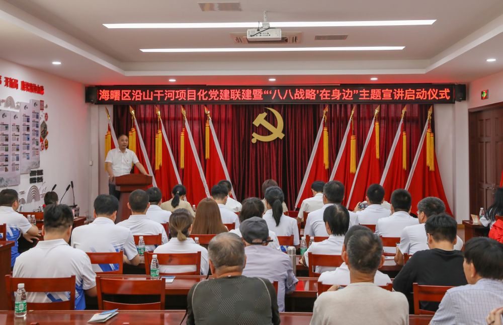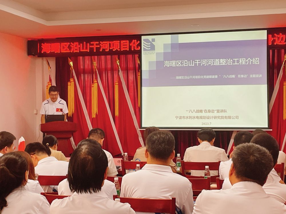 近日,海曙區(qū)直機(jī)關(guān)工委和區(qū)水利局以“五最黨建”為引領(lǐng),在集士港鎮(zhèn)岳童村文化禮堂舉行沿山干河項(xiàng)目化黨建聯(lián)建暨“‘八八戰(zhàn)略’在身邊”主題宣講啟動儀式,我院作為沿山干河項(xiàng)目參建單位、活動的承辦方參與了啟動儀式。我院黨總支書記、副院長王洪霞,工程設(shè)計(jì)項(xiàng)目組及青年黨員代表十余人參加了上述活動。